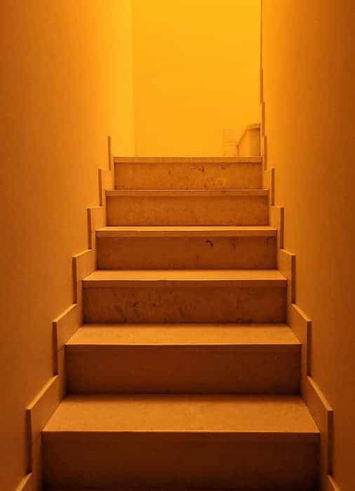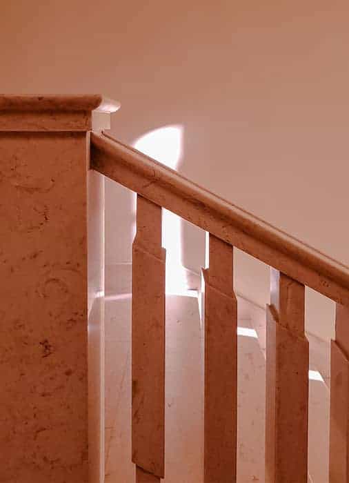 Pink marble staircase and handrail. One of the most beautiful things about the villa is how the light plays on the interior.