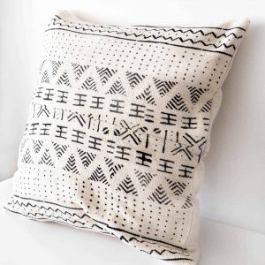Mudcloth cushion made in Morocco with fabric from Mali.