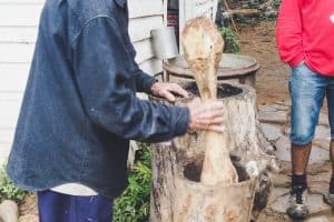 Crushing coffee seeds to prepare for roasting at a Cuban coffee farm.