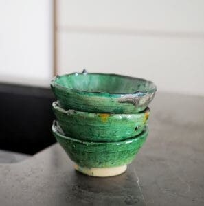 Tamegroute bowls from Morocco, handmade green bowls with character