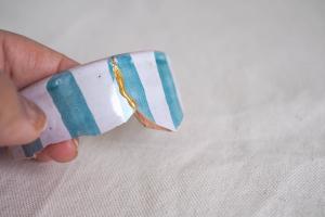 kintsugi pottery is a technique which repairs broken pottery with gold resin