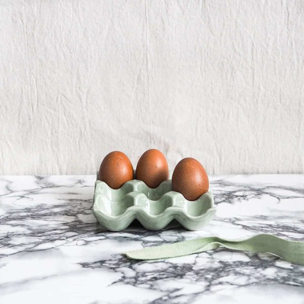 This ceramic egg holder was made in Morocco by Chabi Chic. This is made by ceramic artisans who are based in Marrakech. The holder has a beautiful soft sage green glossy finish with a matt finish underside to prevent movement.