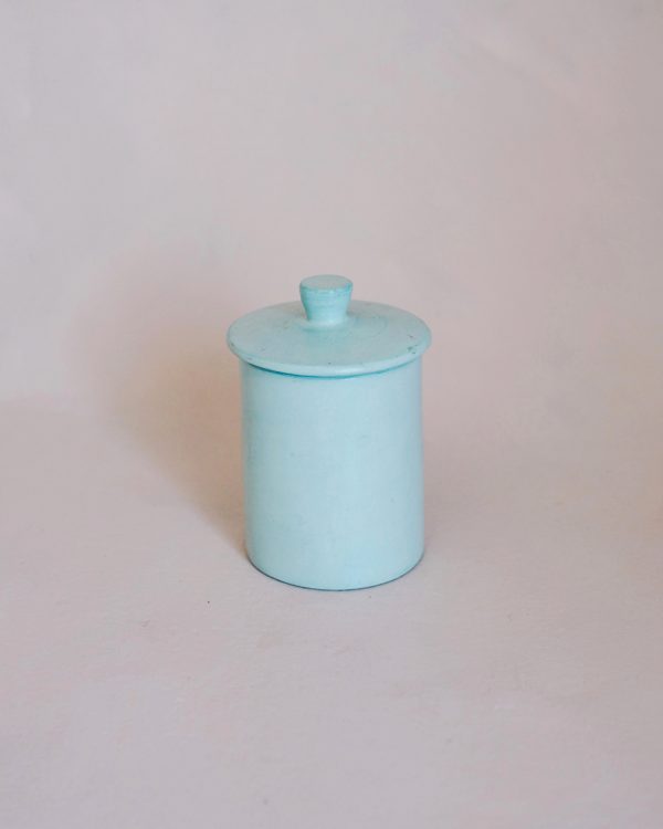 These cute little storage pots are made from tadelakt a waterproof plaster material widely used in Morocco architecture. It is the finish you see much of in Morocco and has a beautiful washed chalky finish semi-gloss finish. The pot has a lid and can be used to store small items.