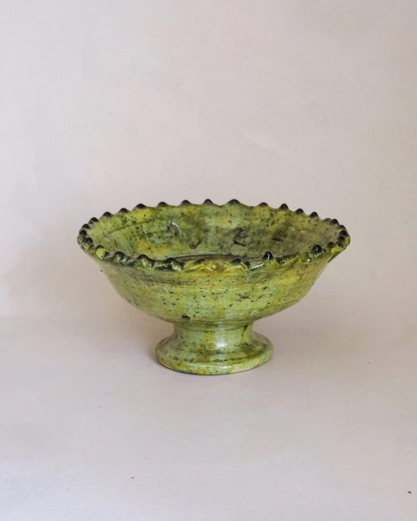 This beautiful bowl with its distinctive jagged edge and light green finish is handmade in Tamegroute, Morocco. As Tamegroute is handmade, every piece has its own characteristics, which add interest to the pottery. Each piece has its own story to tell.